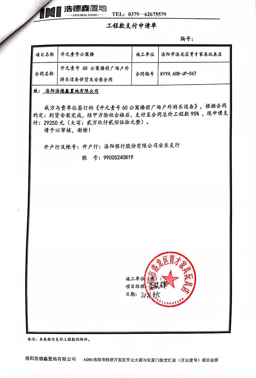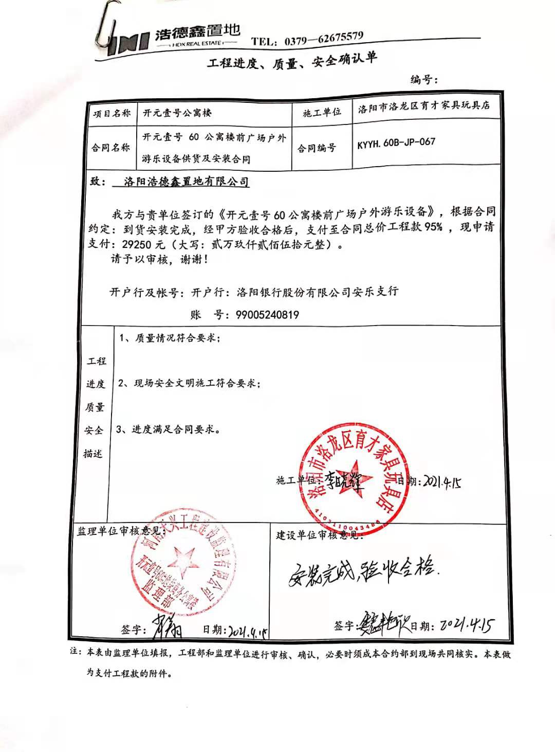 [To Parent Directory] 2021/5/6 10:56 123294 60公寓楼前广场游乐设备工程款支付申请单.jpg 2021/5/6 10:56 171082 60公寓楼前广场游乐设备验收单.jpg 2021/5/6 10:56 137718 工程进度、质量、安全确认单.jpg