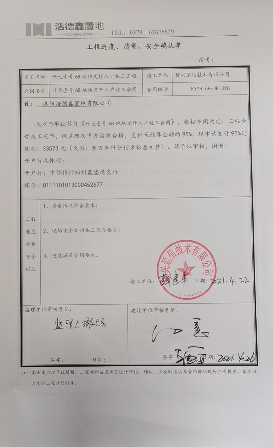 [To Parent Directory] 2021/4/30 17:27 644332 工程款支付申请单.jpg 2021/4/30 17:27 642111 工程质量进度安全确认单.jpg 2021/4/30 17:27 208225 结算协议书-开元壹号68地块光纤入户施工合同.pdf