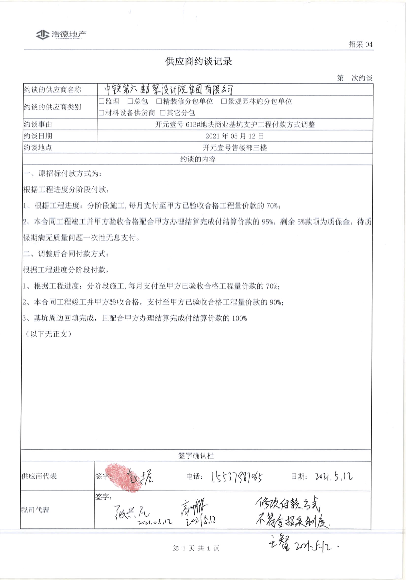 [To Parent Directory] 2021/6/3 15:25 279067 供应商约谈记录-付款方式调整-中铁六院.jpg 2021/6/3 15:25 635302 关于付款方式调整的审批.jpg 2021/6/3 15:25 1134026 定标审批-61B#地块基坑支护工程.jpg 2021/6/3 15:25 793257 开元壹号61B#地块商业基坑支护工程施工合同.doc