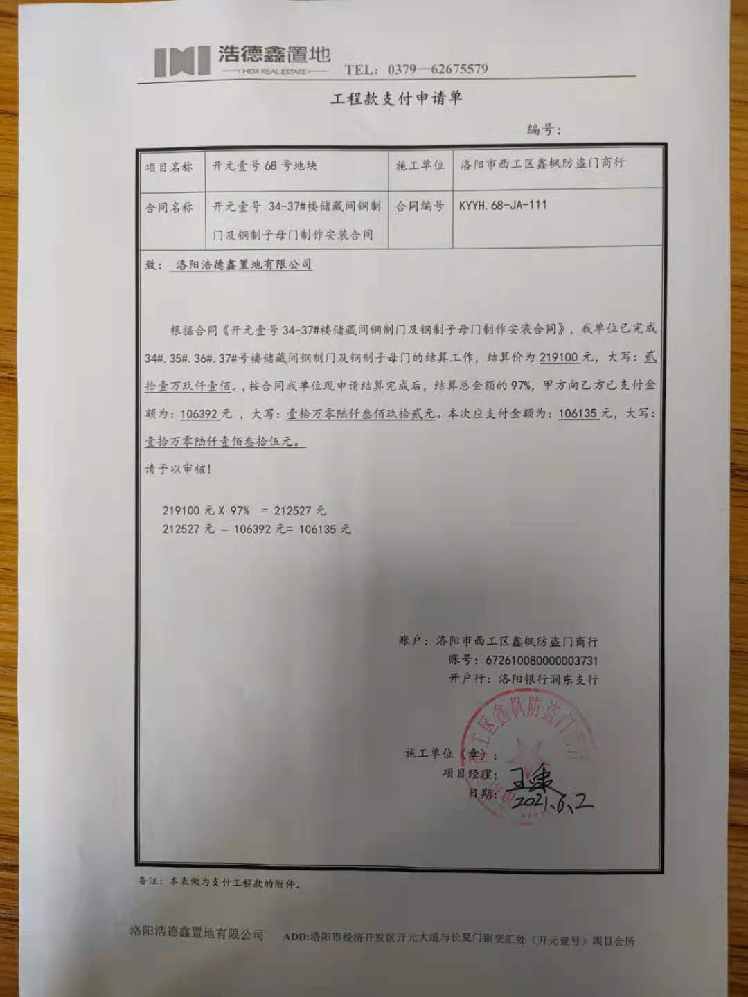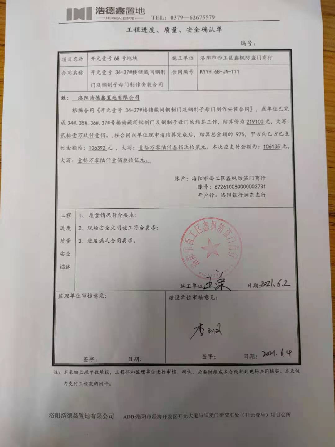 [To Parent Directory] 2021/6/7 10:43 133917 发票.jpg 2021/6/7 10:43 96207 安全进度质量确认单.jpg 2021/6/7 10:43 90688 工程款支付申请单.jpg 2021/6/7 10:43 11212558 结算协议书.bmp