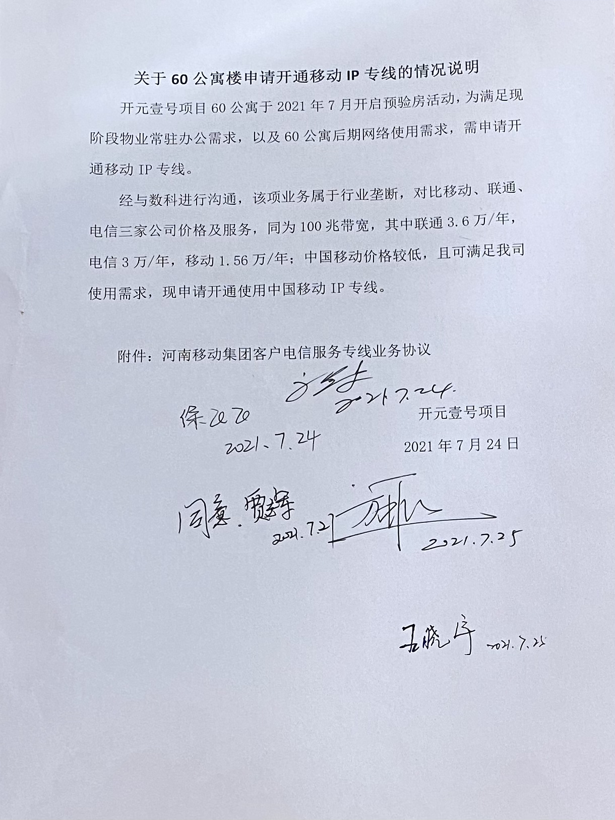 [To Parent Directory] 2021/7/30 14:19 942990 关于60公寓楼申请开通移动IP专线的情况说明 (2).jpg 2021/7/30 14:19 209247 开元壹号项目移动专线合同.pdf