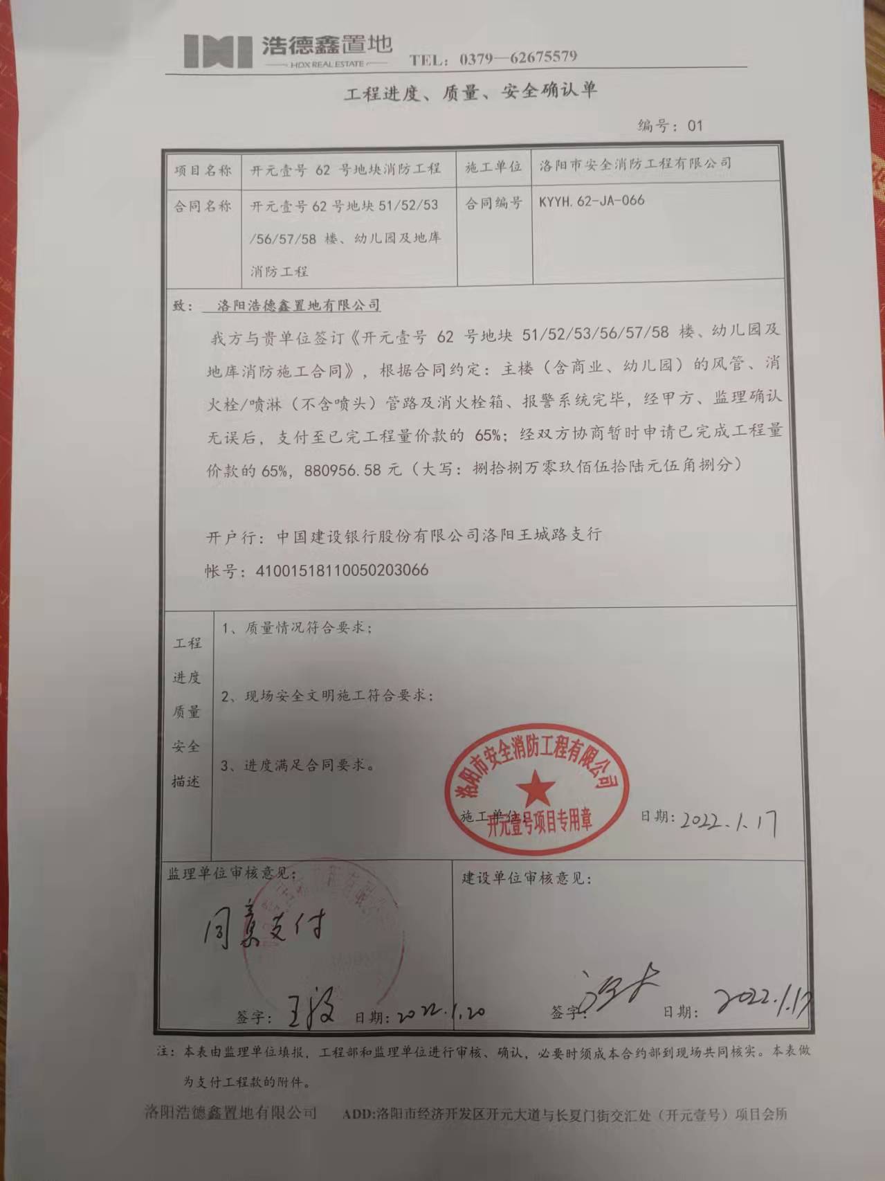[To Parent Directory] 2022/1/24 8:29 113015 工程款支付申请单.jpg 2022/1/24 8:29 401363 开元壹号62地块一期消防第一次进度款情况说明.pdf 2022/1/24 8:29 144067 形象进度审批表.jpg 2022/1/24 8:29 118202 进度款汇总.jpg 2022/1/24 8:29 129864 进度质量安全确认单.jpg
