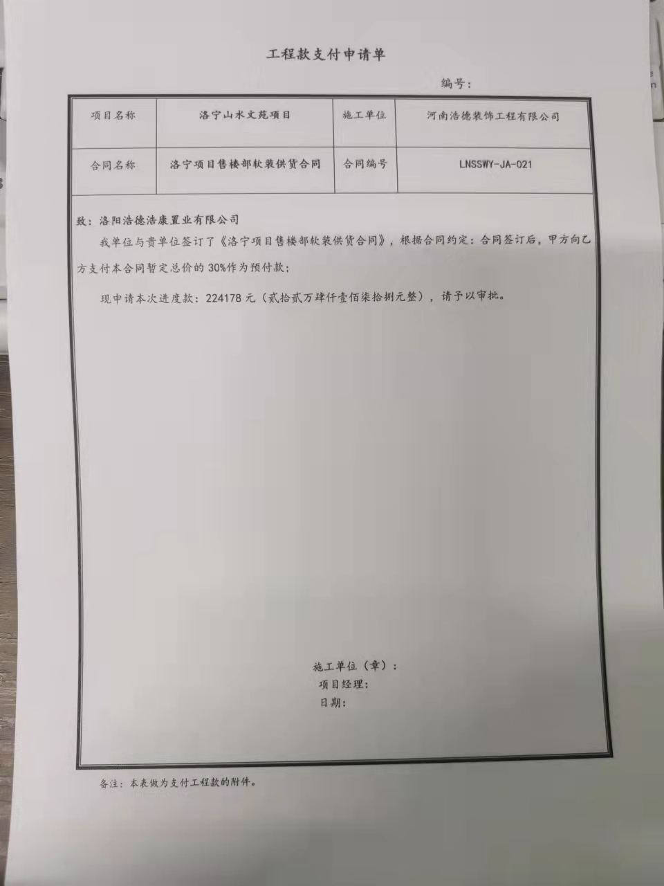 [To Parent Directory] 2022/3/8 15:19 179016 付款申请单.jpg 2022/3/8 15:19 1847535 洛宁项目售楼部软装供货合同(上传)-地产与浩德装饰 (1).doc