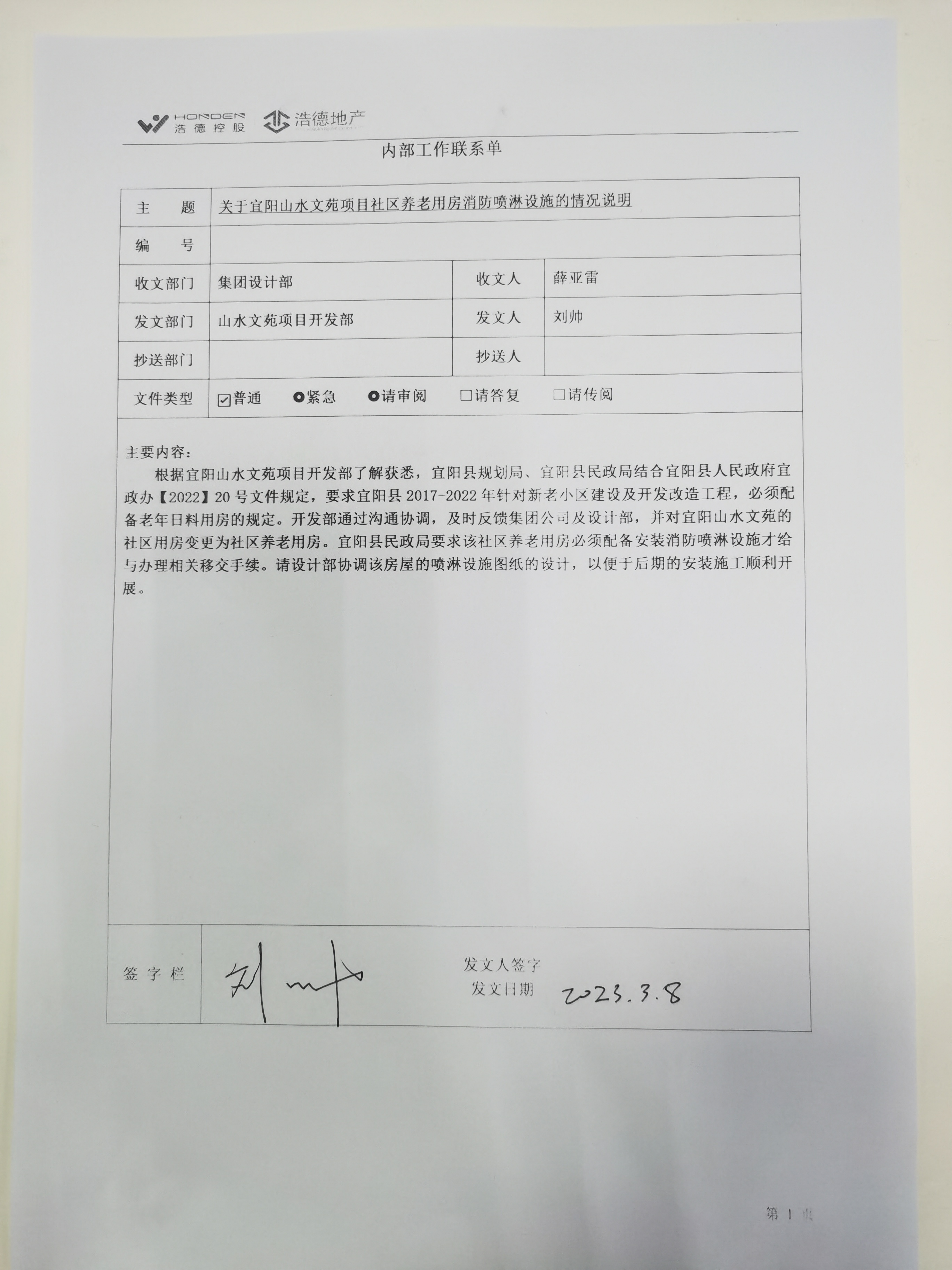 [To Parent Directory] 2023/4/11 11:41 212983 9#楼养老用房增设消防喷淋变更单-01.pdf 2023/4/11 11:41 76041 宜阳山水文苑9#社区用房消防喷淋改造测算.xlsx 2023/4/11 11:41 1567173 宜阳山水文苑社区养老用房增设喷淋联系函.jpg 2023/4/11 11:41 171746 附件一:9#楼变更.pdf 2023/4/11 11:41 163371 附件二:地库变更-01.pdf