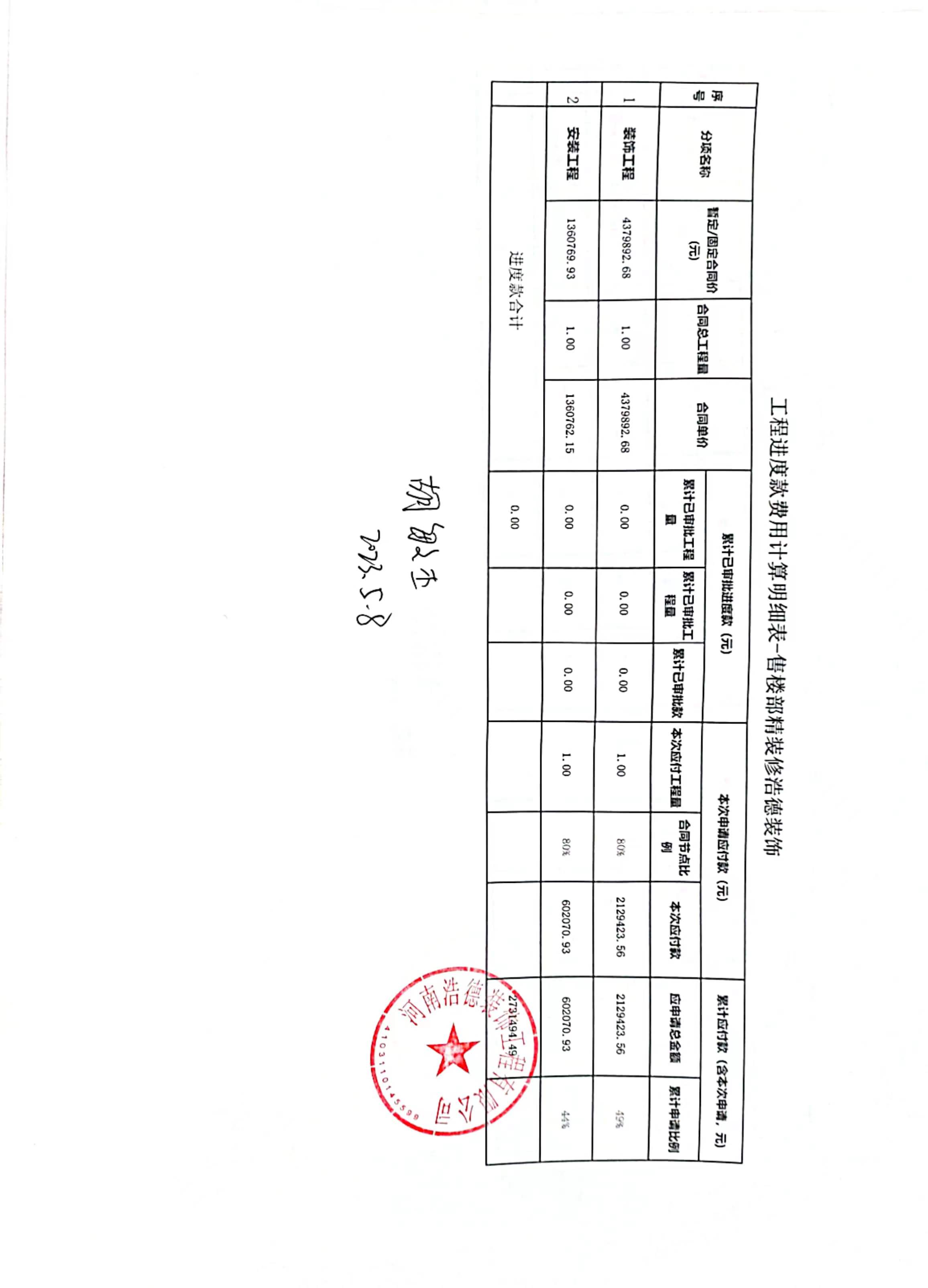 [To Parent Directory] 2023/5/9 11:54 336192 工程进度款支付申请单.jpg 2023/5/9 11:54 236991 工程进度款费用计算明细表.jpg 2023/5/9 11:54 407001 工程进度质量安全确认单.jpg 2023/5/9 11:54 720723 第一次进度款申请-售楼部精装修(浩德装饰)5.8.xlsx