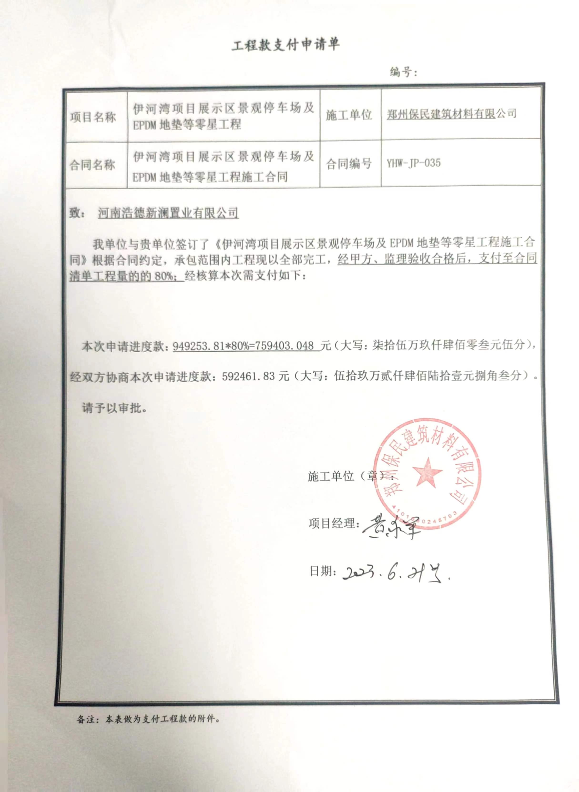 2023/6/29 15:45 6673266 停车场及游乐设施-伊河湾项目示范区景观第一次进度款(1).xlsx
