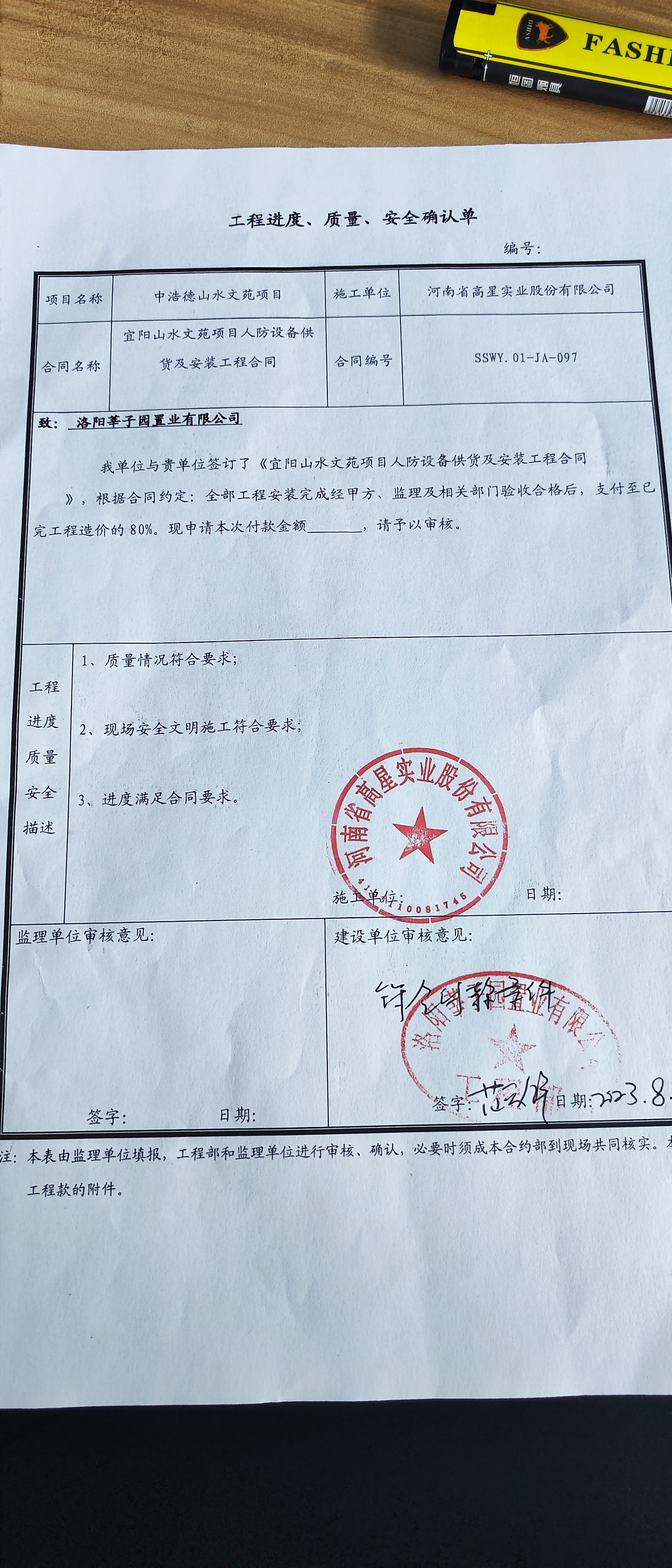 [To Parent Directory] 2023/8/21 11:56 148623 发票.pdf 2023/8/21 11:56 4117985 宜阳山水文苑项目人防设备供货及安装工程进度款费用计算明细表-第3次.pdf 2023/8/21 11:56 819964 工程款支付申请.jpg 2023/8/21 11:56 2516024 工程进度质量安全确认单.jpg