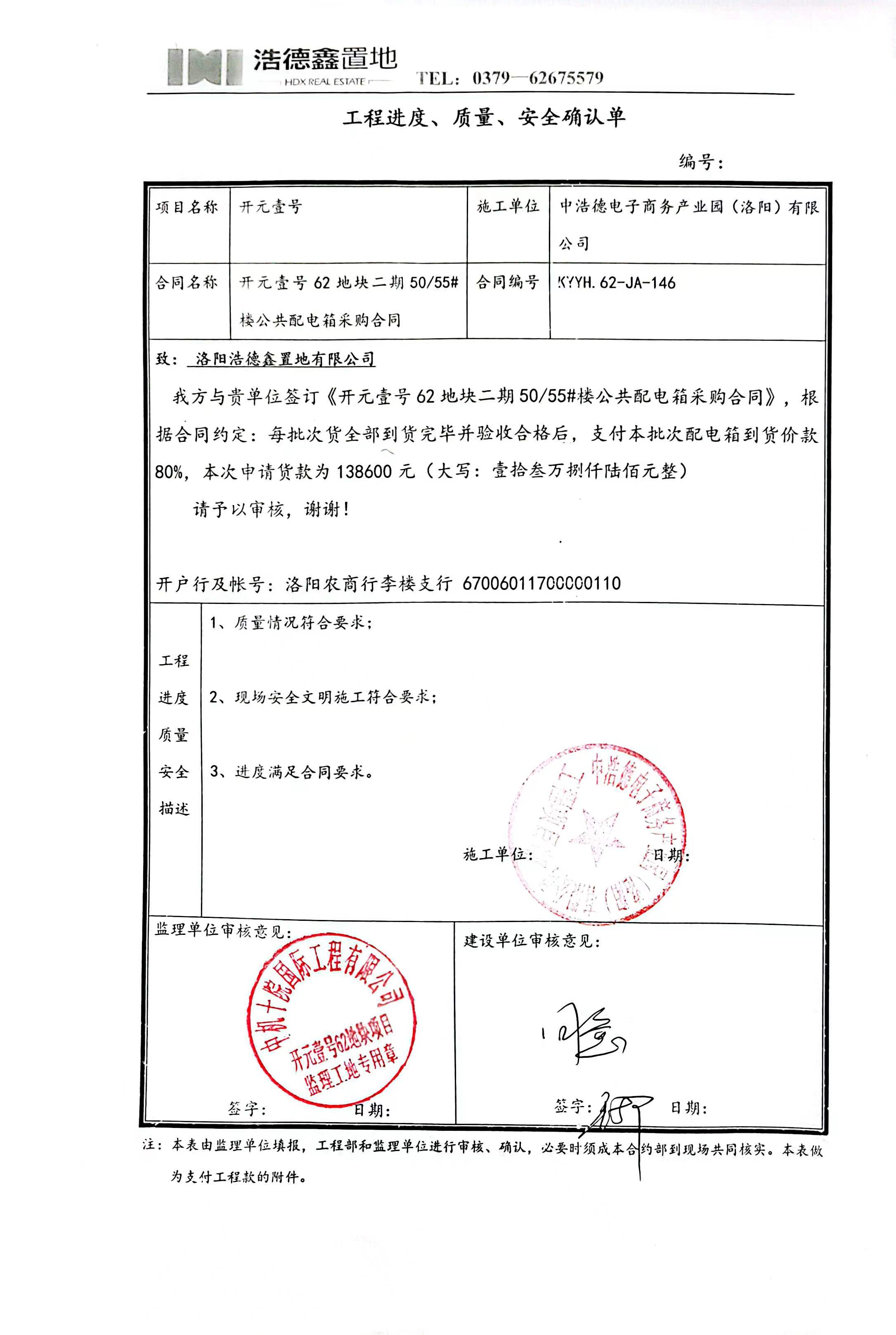 [To Parent Directory]2023/10/25 17:06 288118 工程款支付申请单.jpg2023/10/25 17:06 374409 工程质量进度安全确认单.jpg2023/10/25 17:06 6667896 材料验收单.pdf2023/10/25 17:06 2225390 浩德鑫--产业园 开元壹号62#地块二期50#楼公共配电箱--第一次进度款(新表).pdf
