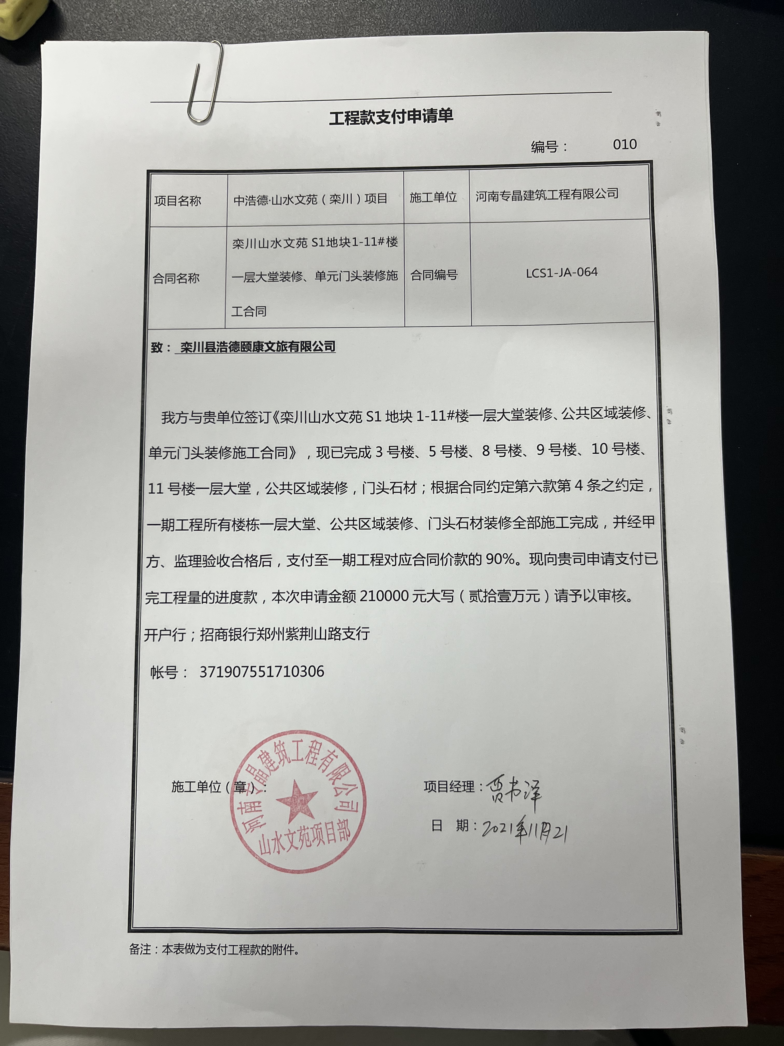 [To Parent Directory]2023/11/29 15:28 81261 3#、5#、8#、9#、10#、11#大堂及公区墙进度款费用计算明2023.10.17.xlsx2023/11/29 15:28 486776 施工单位变更协议.pdf2023/11/29 15:28 7431028 质量进度确认单.jpg2023/11/29 15:28 7383666 进度款明细.jpg2023/11/29 15:28 6950116 进度款申请单.jpg