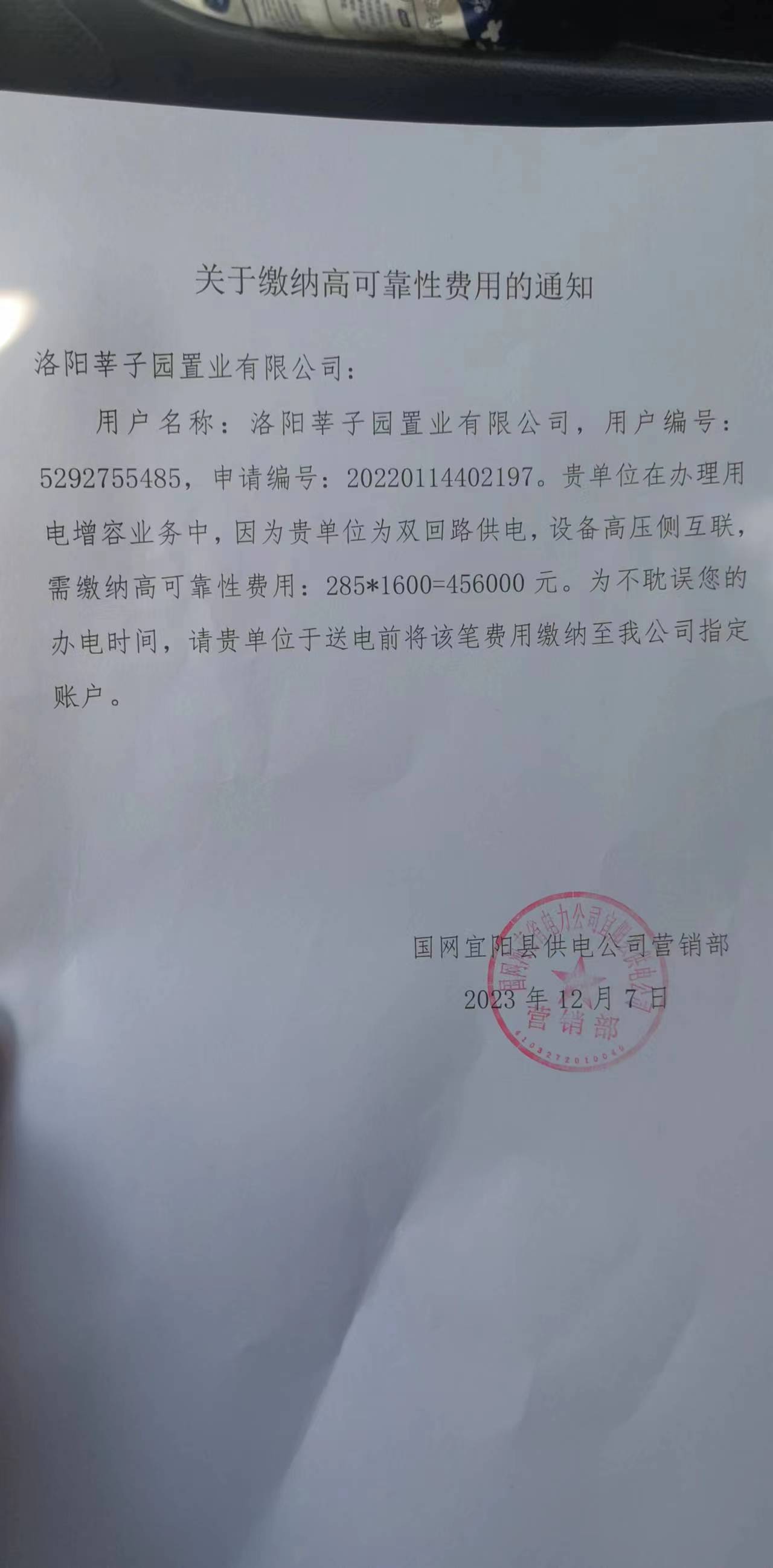 宜阳县电业局高可靠性费用说明.jpg