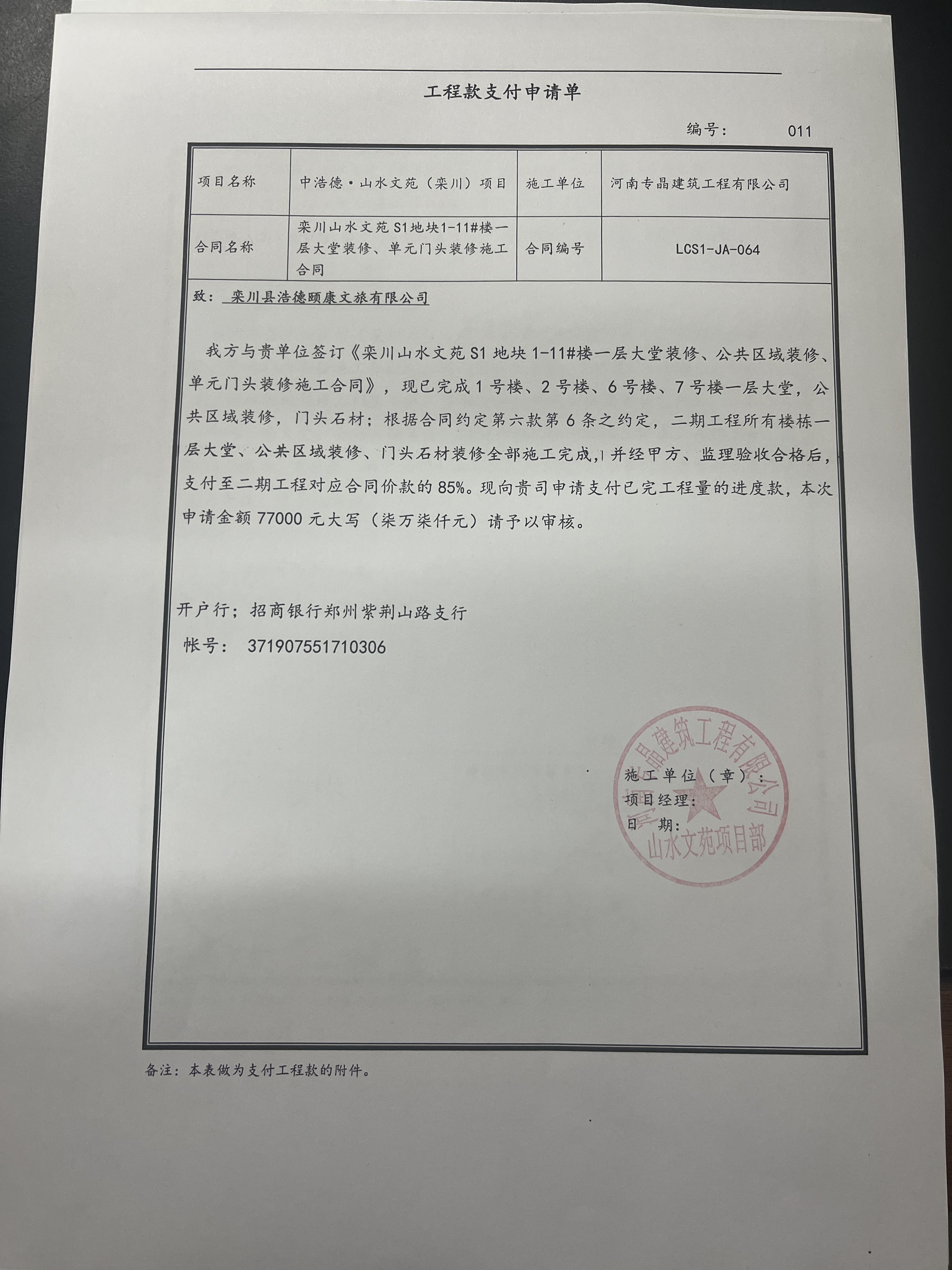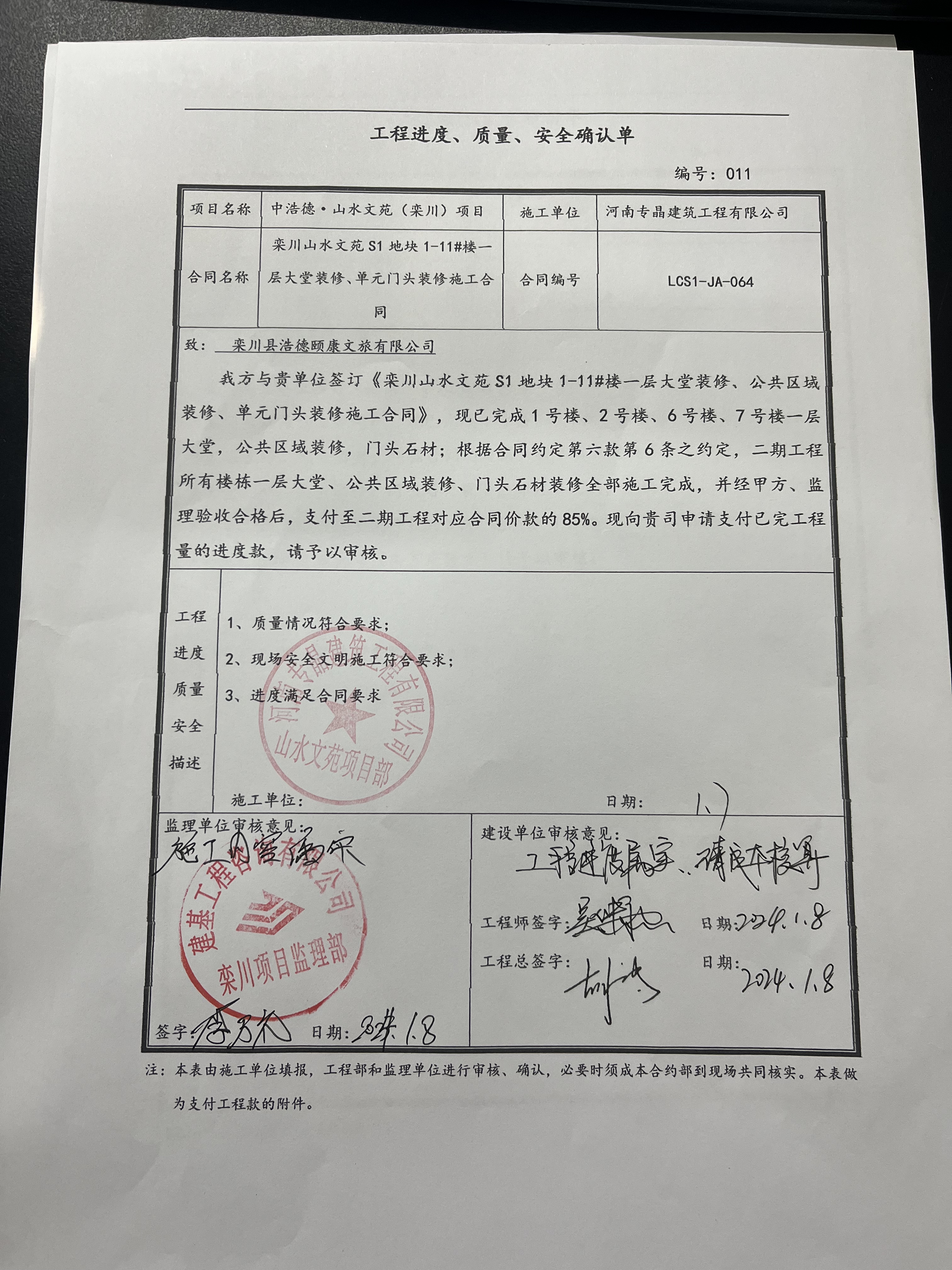 [To Parent Directory] 2024/1/15 12:31 81817 1#、2#、6#、7#大堂及公区墙进度款费用计算明2024.1.8 - 副本.xlsx 2024/1/15 12:31 172356 1_1#、2#、6#、7#大堂及公区墙进度款费用计算明2024.1.8 - 副本(1)(1).pdf 2024/1/15 12:31 7410952 质量进度确认单.jpg 2024/1/15 12:31 7098664 进度款申请单.jpg