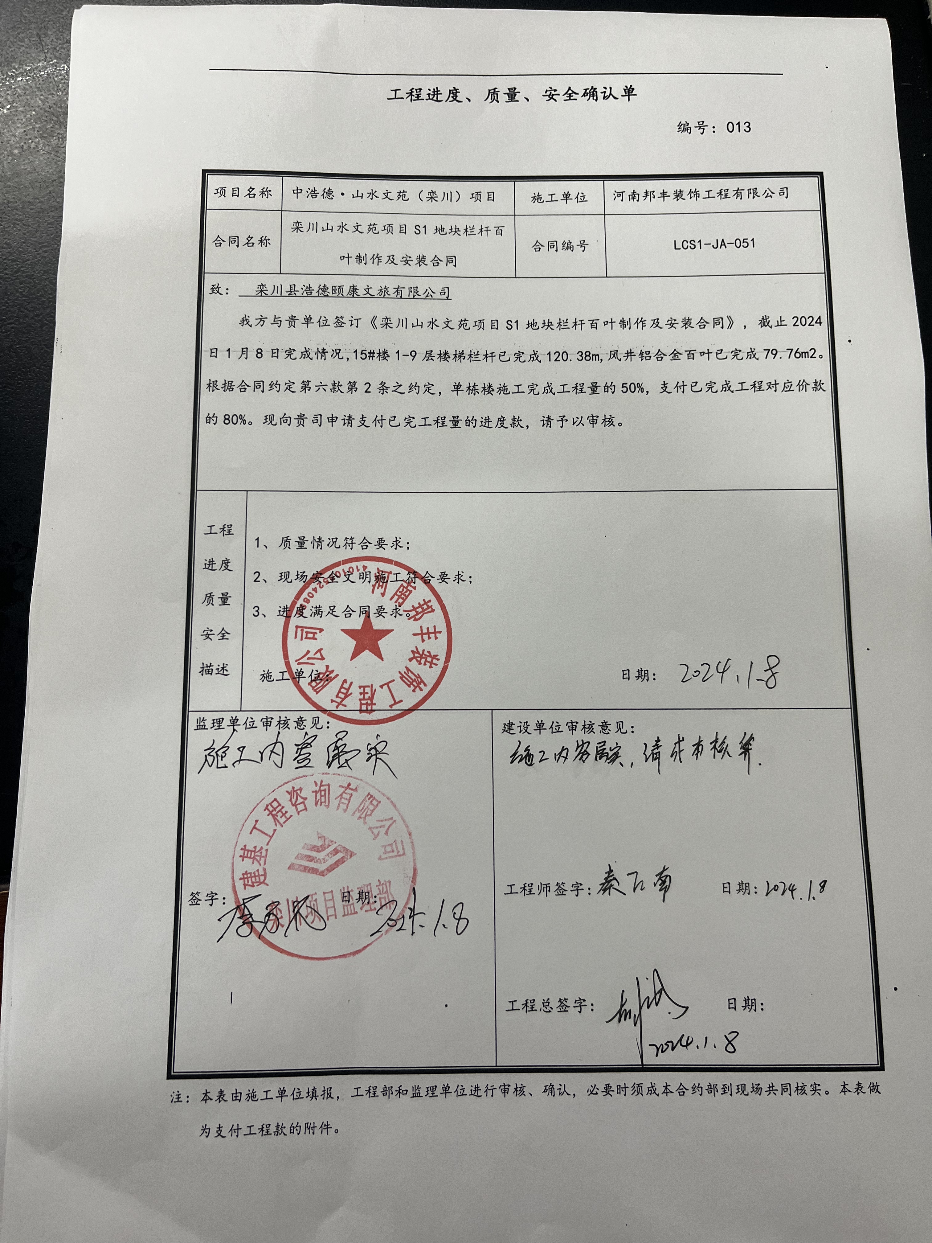 [To Parent Directory] 2024/1/15 12:32 19435 15#楼梯栏杆及消防百叶窗进度款明细表 - 副本.xlsx 2024/1/15 12:32 7481177 质量进度确认单.jpg 2024/1/15 12:32 7466715 进度款明细.jpg 2024/1/15 12:32 7235718 进度款申请单.jpg