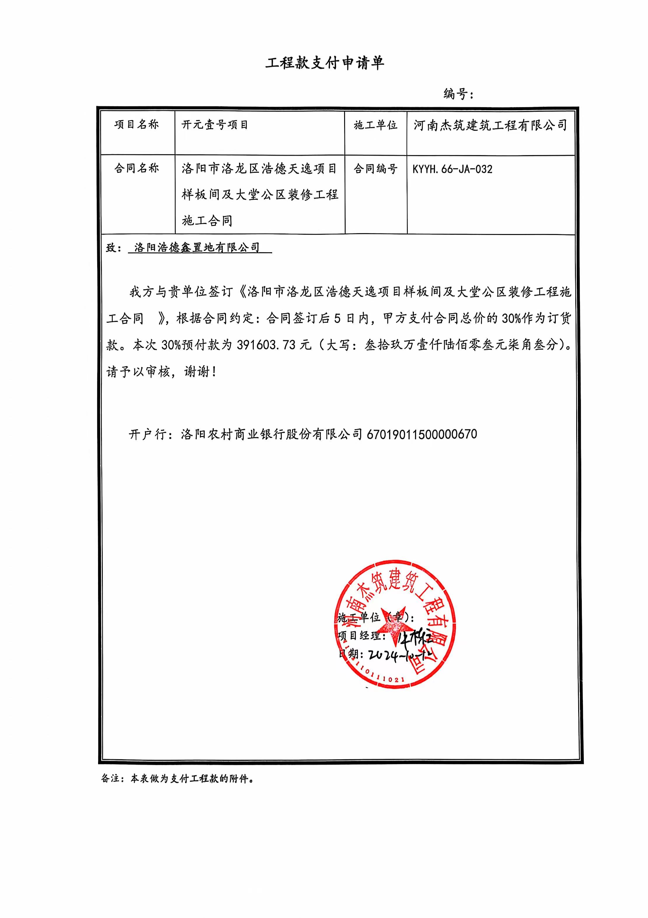 [To Parent Directory]2024/10/14 11:17 336662 工程款支付申请单.jpg2024/10/14 11:17 367215 工程质量进度安全确认单.jpg2024/10/14 11:17 138461 洛阳浩德鑫置地有限公司发票391603.73.pdf